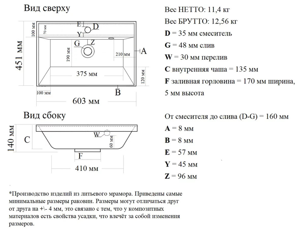 | Материал | литой мрамор |