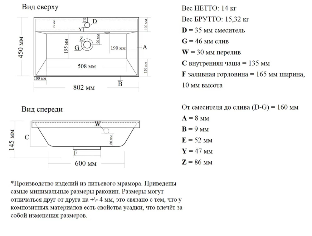 | Материал | литой мрамор |