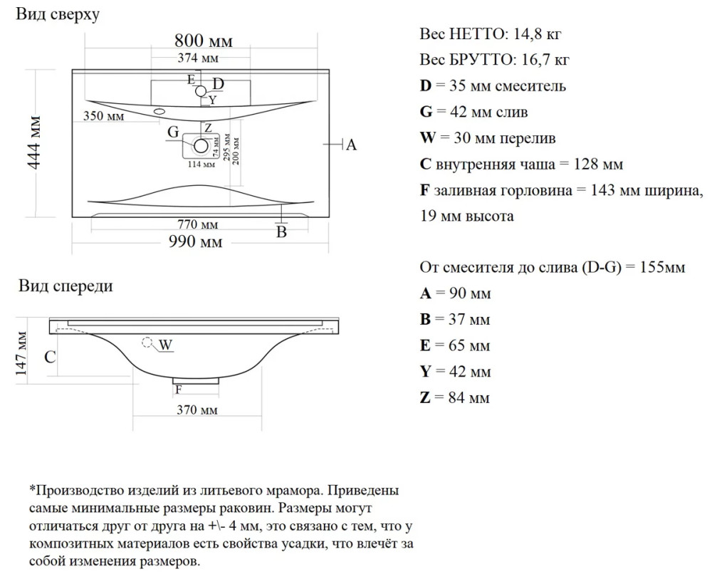 | Материал | литой мрамор |