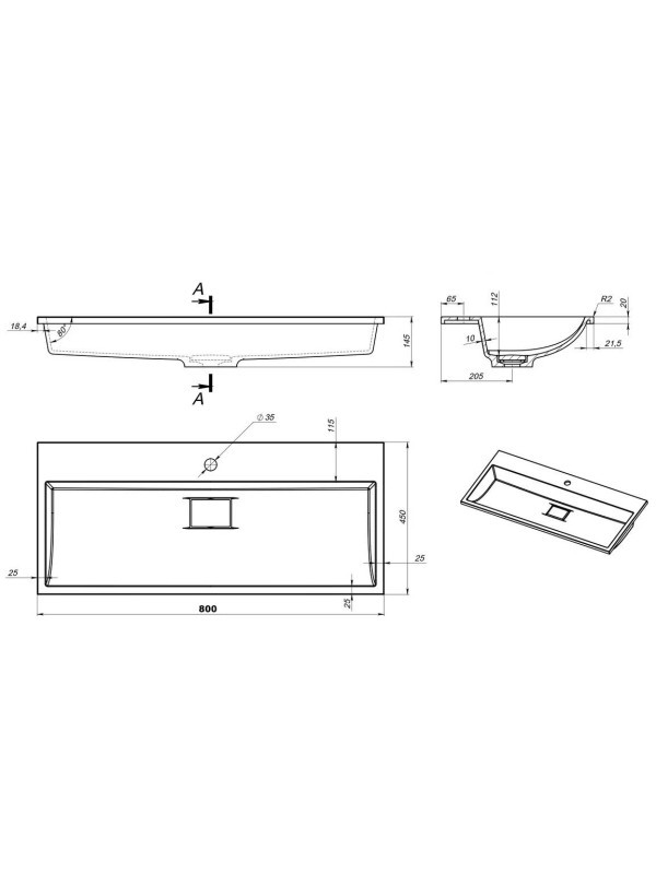 Быстрая покупка товара: Умывальник Versalia Absolute 80 black код: 150231