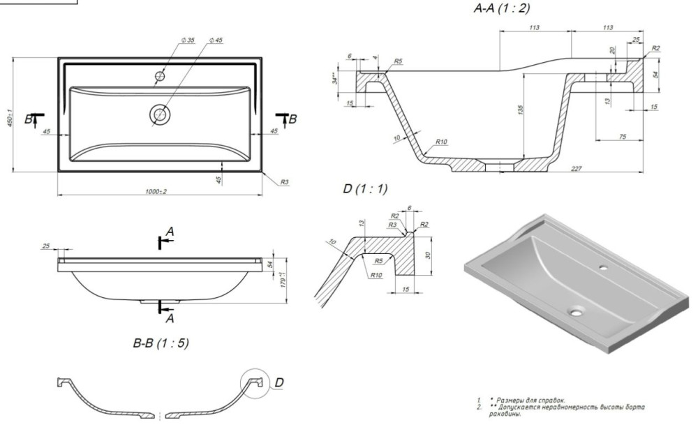 | Отверстие под перелив | Да |