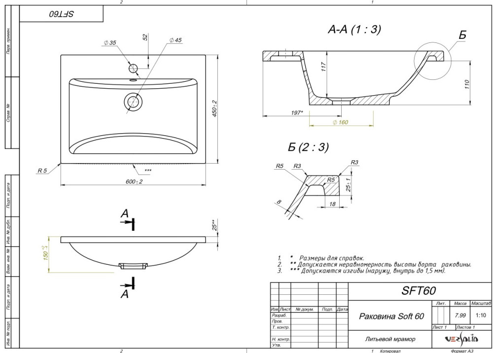 Умывальник Versalia Soft 60