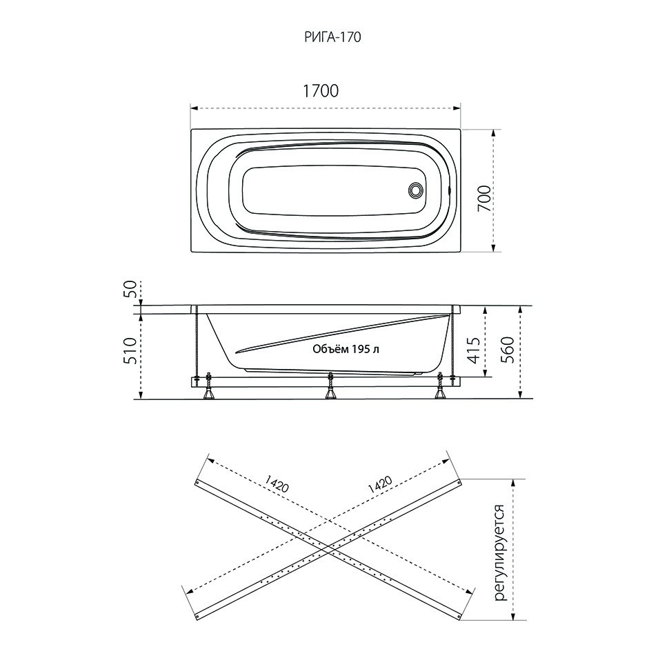 Ванна акриловая 1Acreal Riga 170x70 сочетает в себе высокую функциональность и минималистичный дизайн, придавая ванной комнате современный вид.