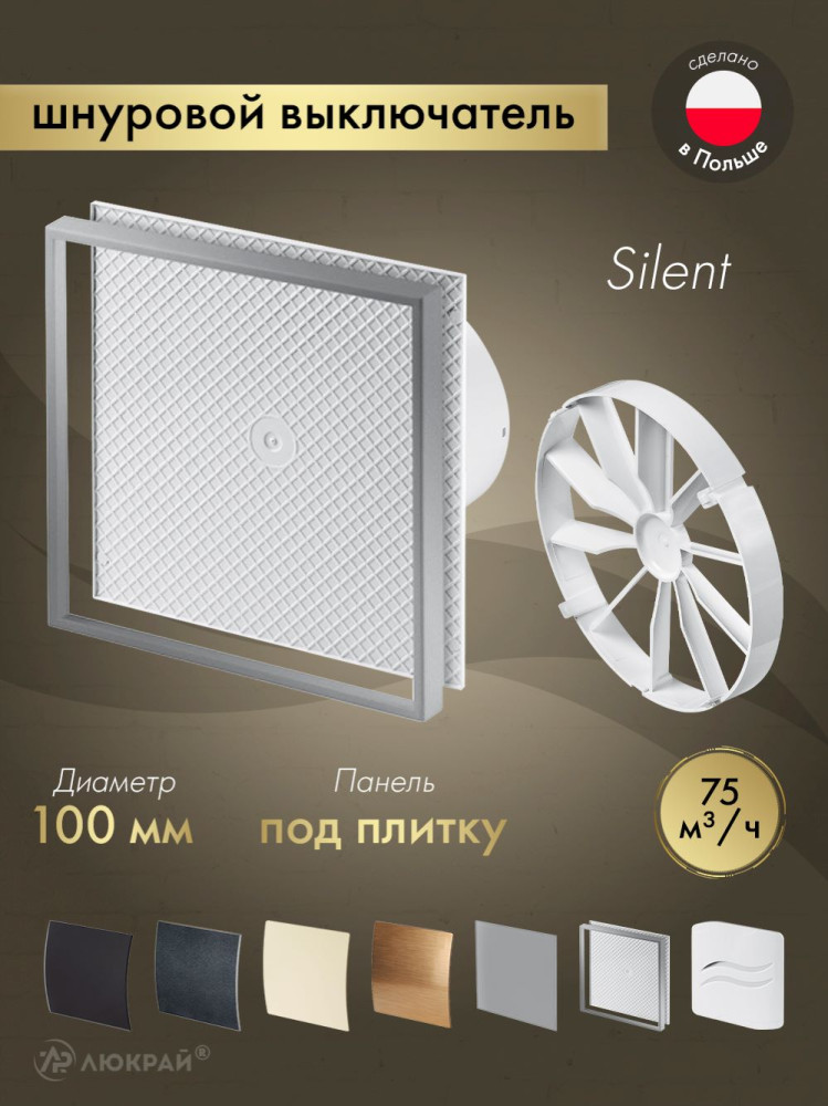 Вытяжной вентилятор Awenta System+ Silent 100W / KWS100W-PI100-ZZ100